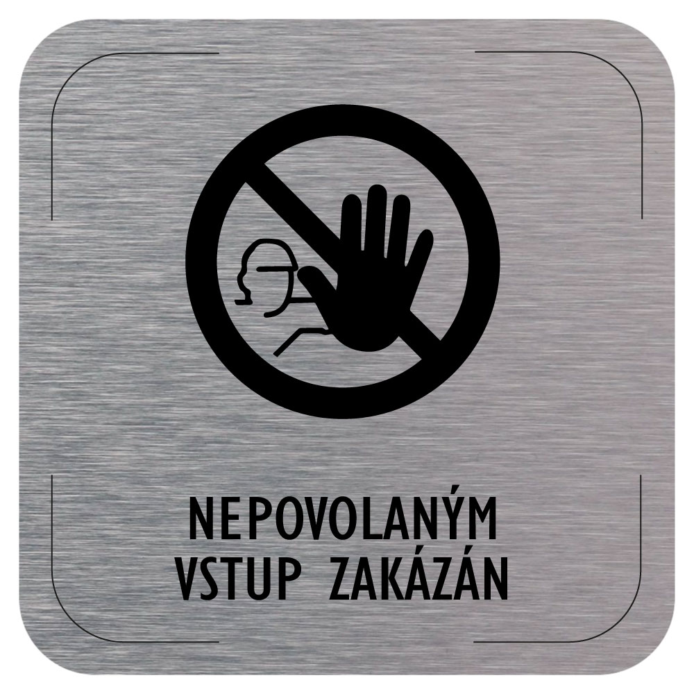 Cedulka na dveře - Nepovolaným vstup zakázán - piktogram, hliníková tabulka, 80 x 80 mm