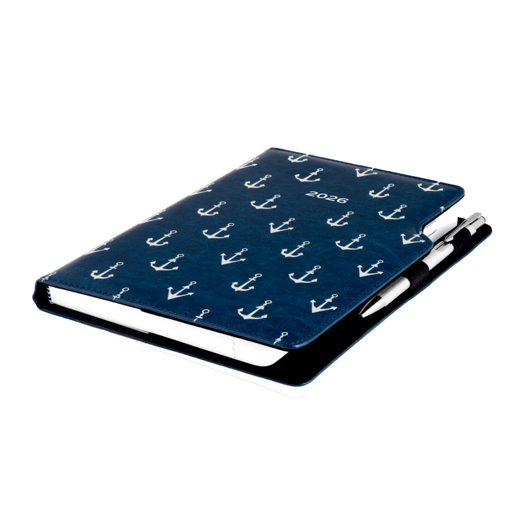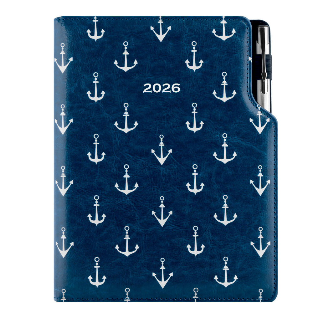 Diář DESIGN týdenní B5 2026 - modrá - Námořník - kotvy