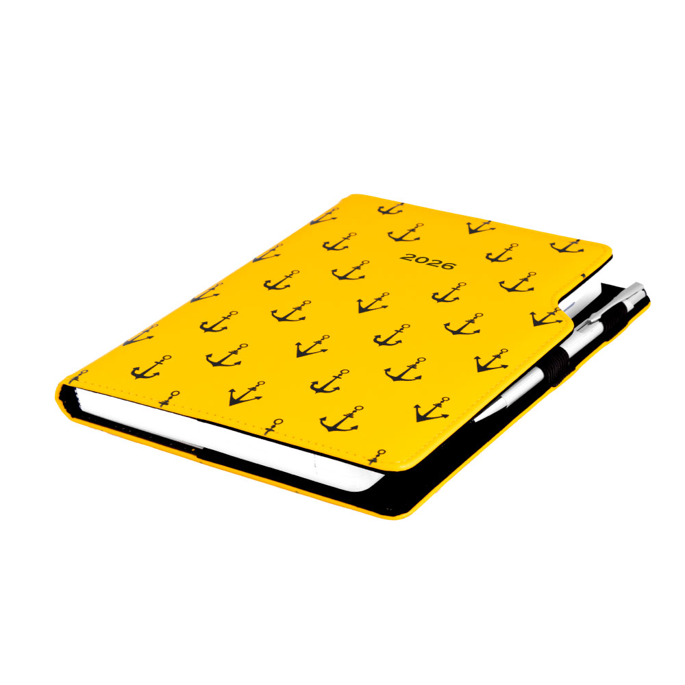 Diář DESIGN tydenní B5 2026 - žlutá - Námořník - kotvy