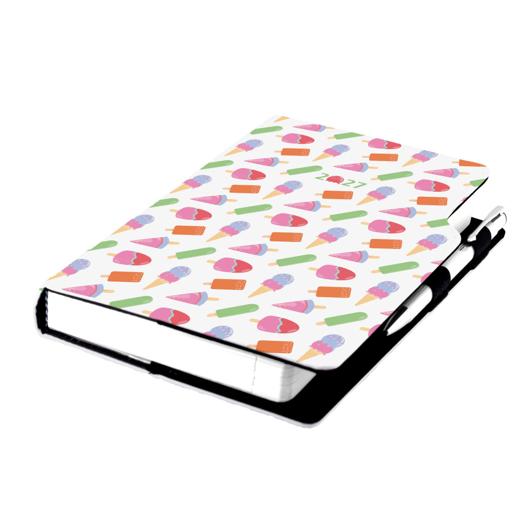 Diář obsahuje: kulaté odtrhávací rožky, bílou záložku a propisku