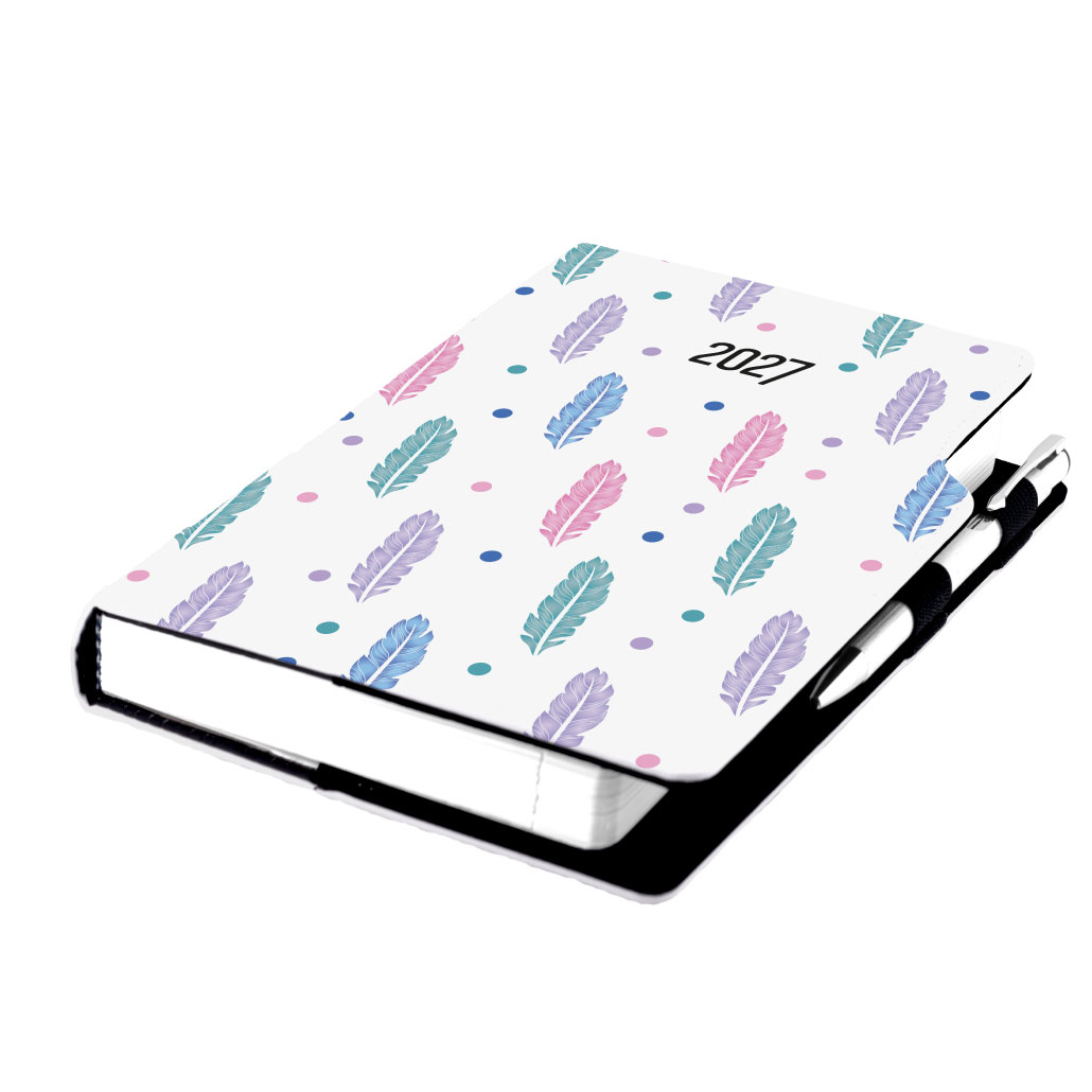 Diář obsahuje: kulaté odtrhávací rožky, bílou záložku a propisku