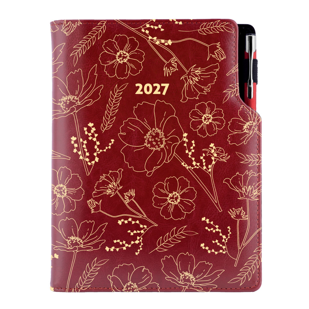 Diář DESIGN denní A5 2027 český - bordó - Květiny