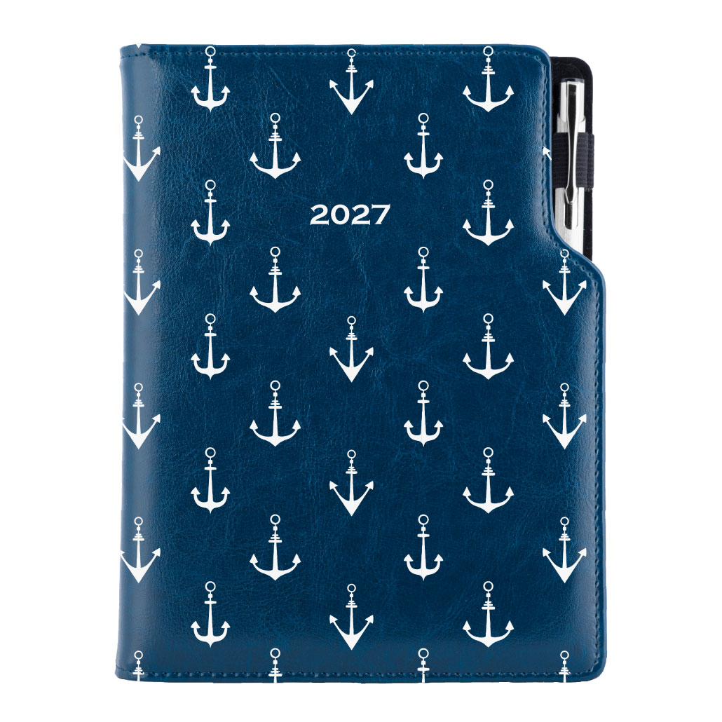 Diář DESIGN denní A5 2027 český - modrá - Námořník - kotvy