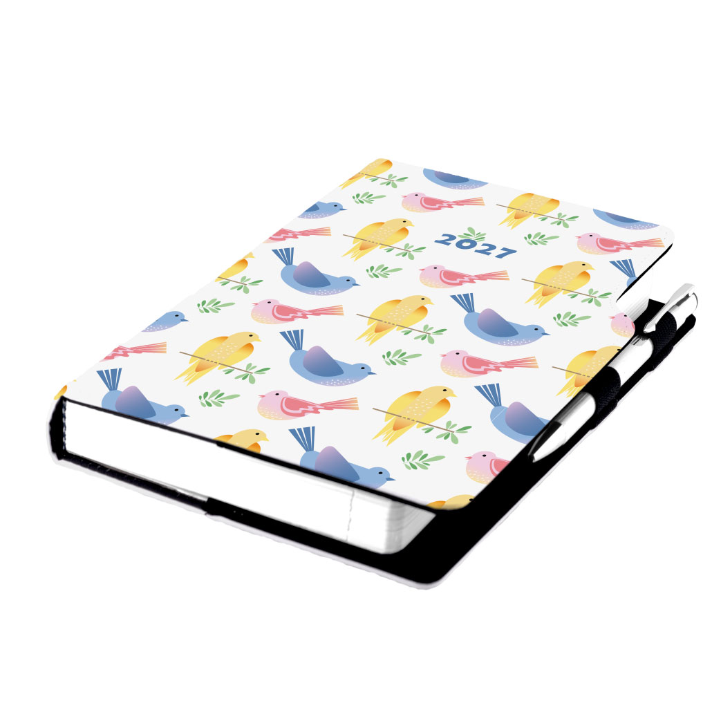 Diář obsahuje: kulaté odtrhávací rožky, bílou záložku a propisku