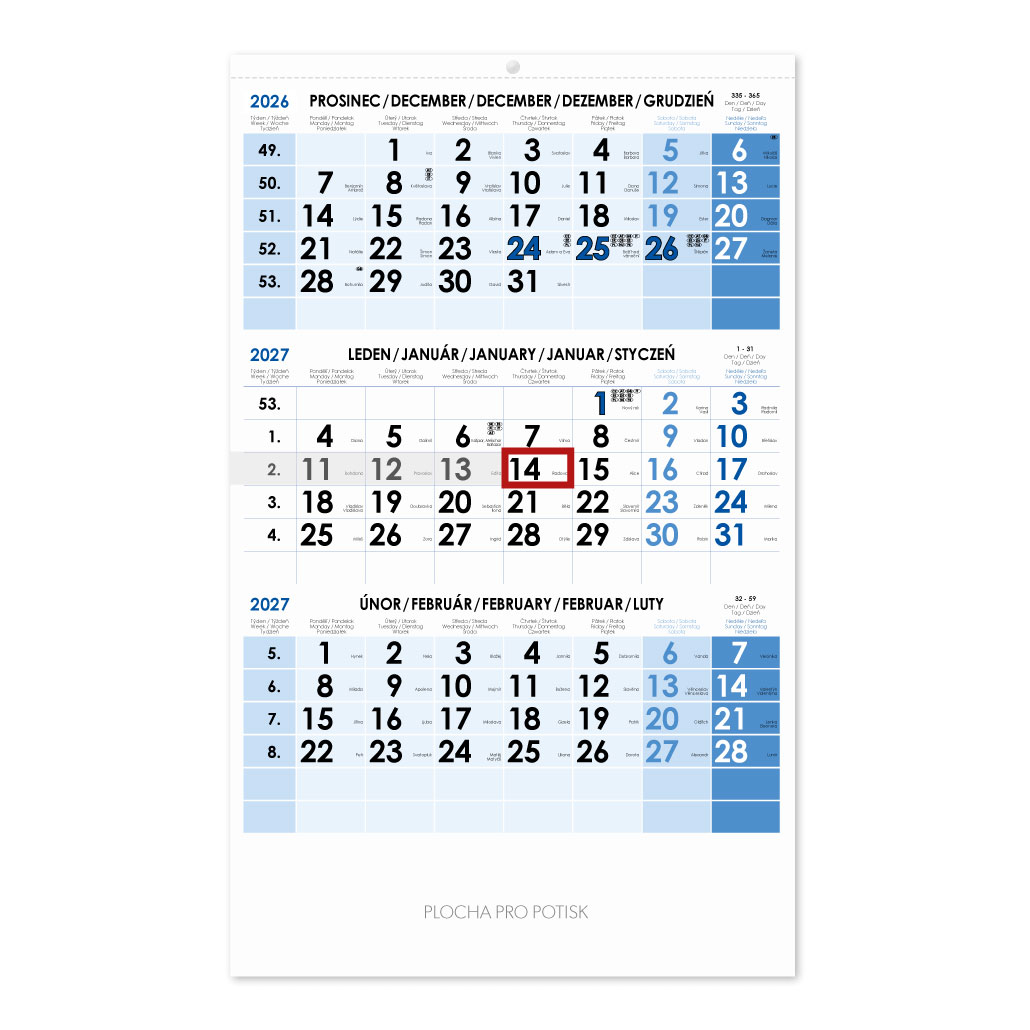 | Typ kalendáře | Nástěnný, Tříměsíční |