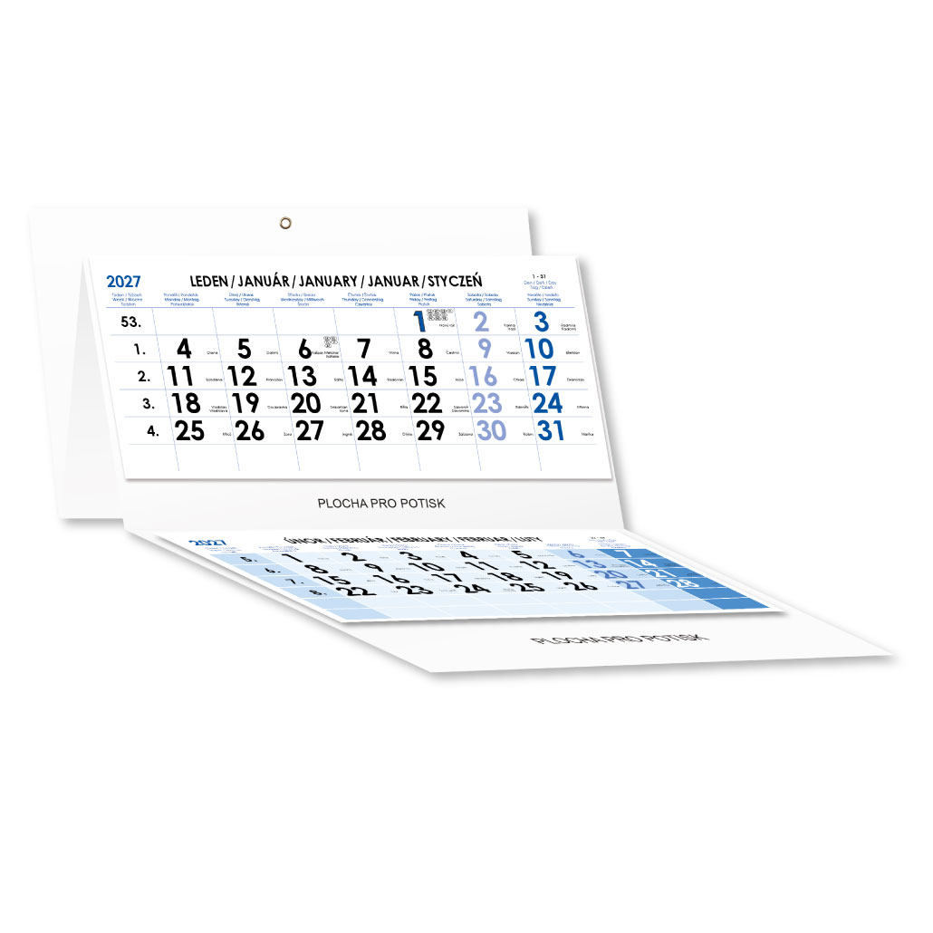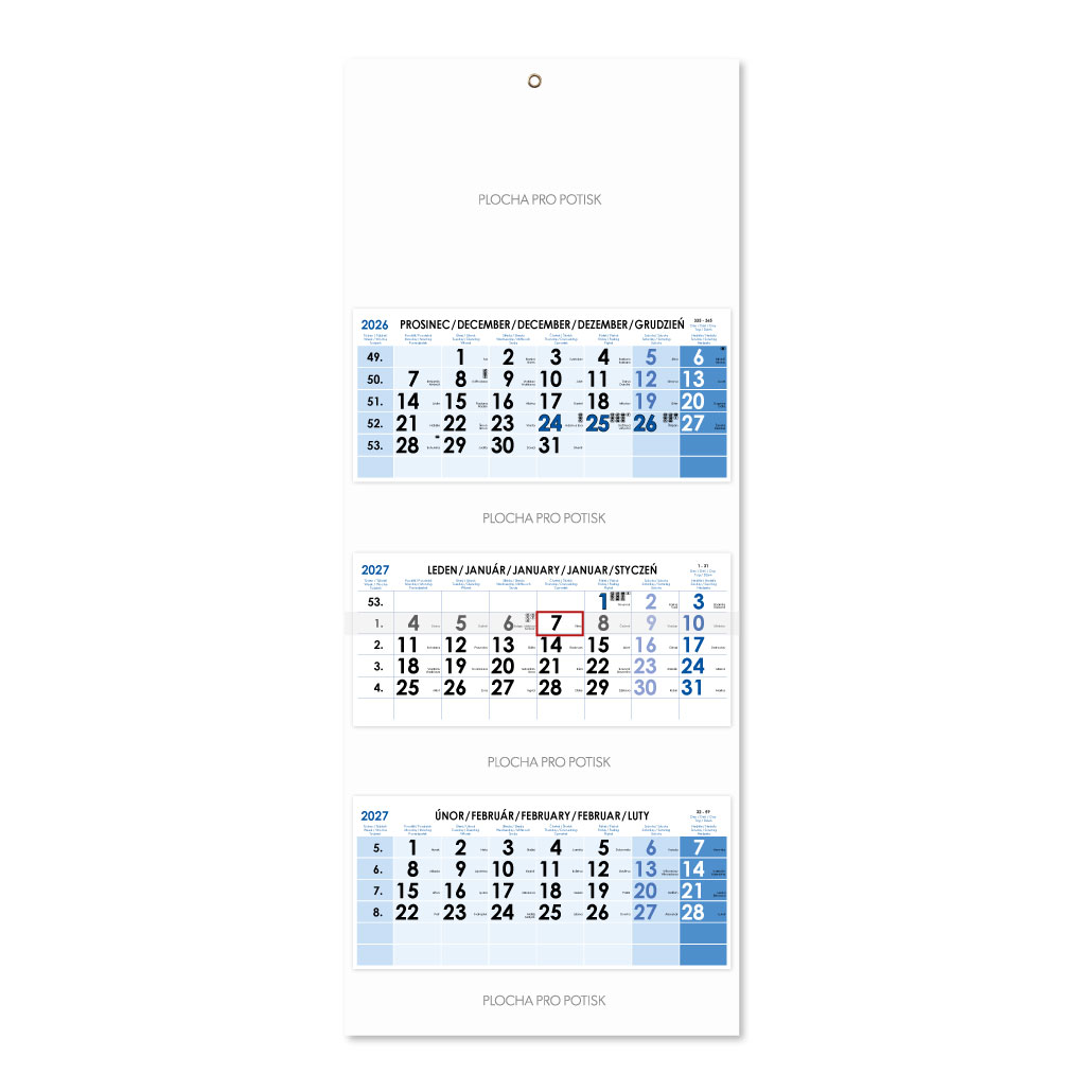 Tříměsíční kalendář Trio skládaný český 2027 - modrý