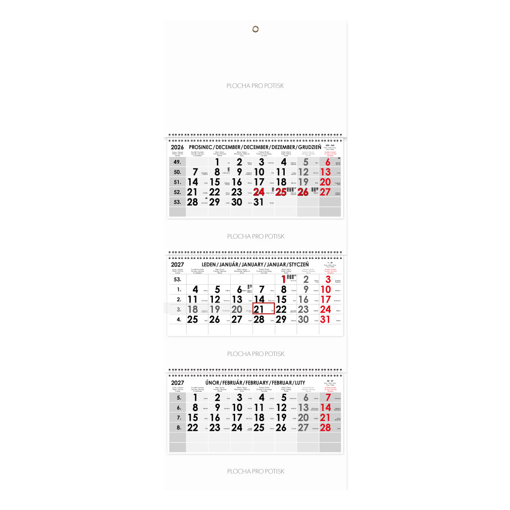 | Typ kalendáře | Nástěnný, Tříměsíční |