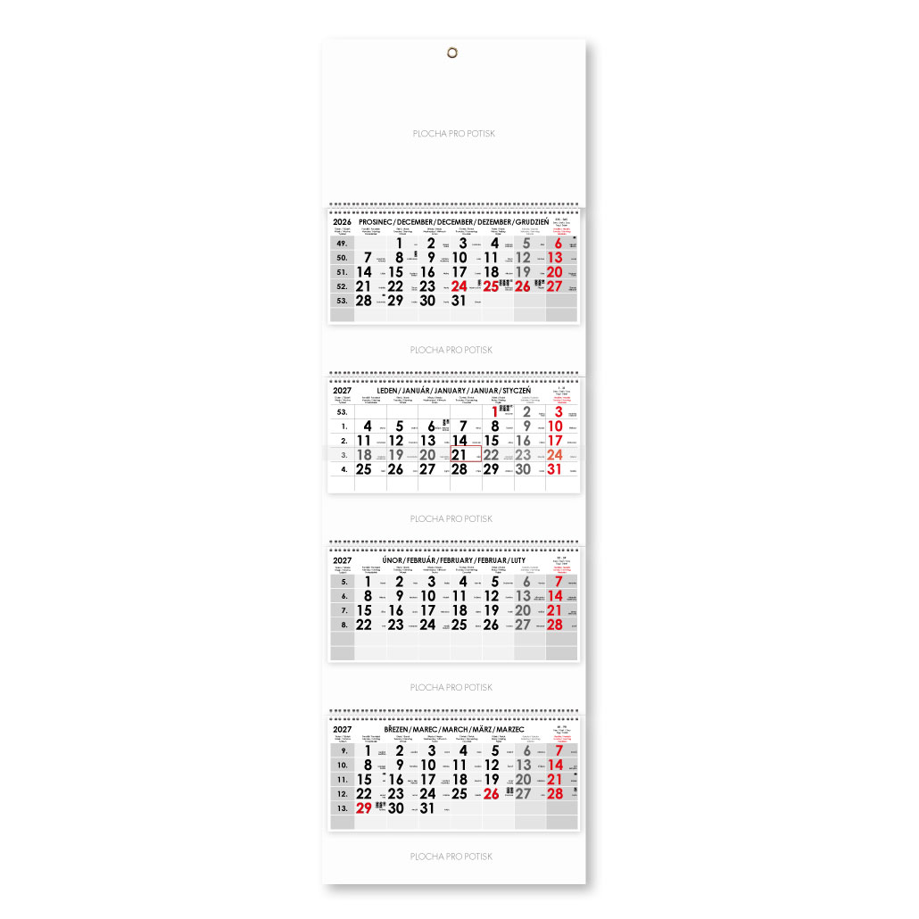 Formát kalendária: 295 x 135 mm