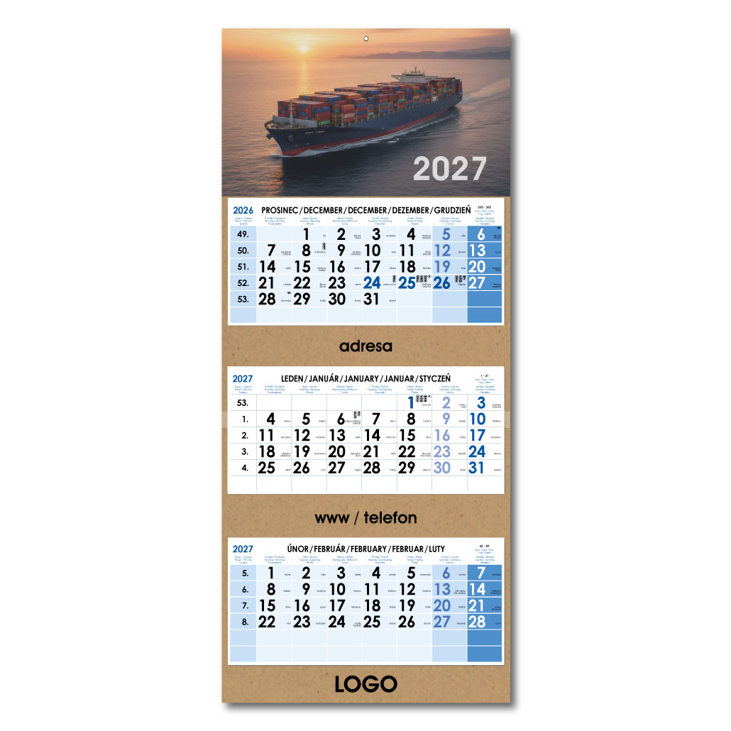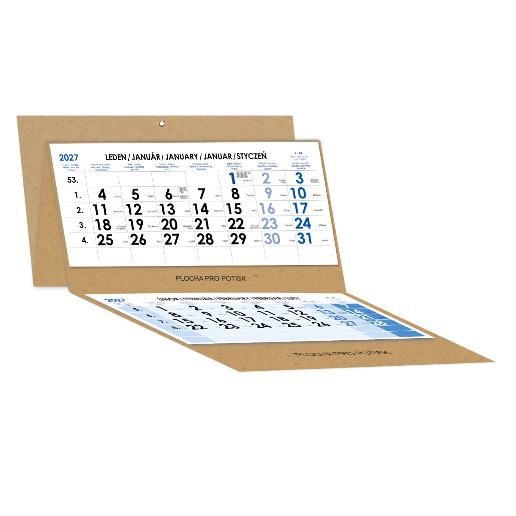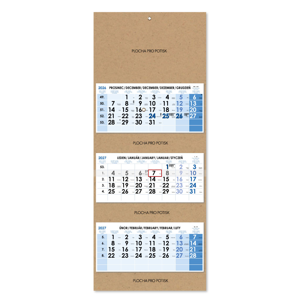 Tříměsíční kalendář Trio Kraft skládaný český 2027 - modrý