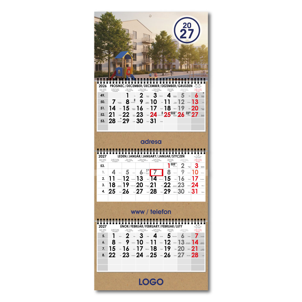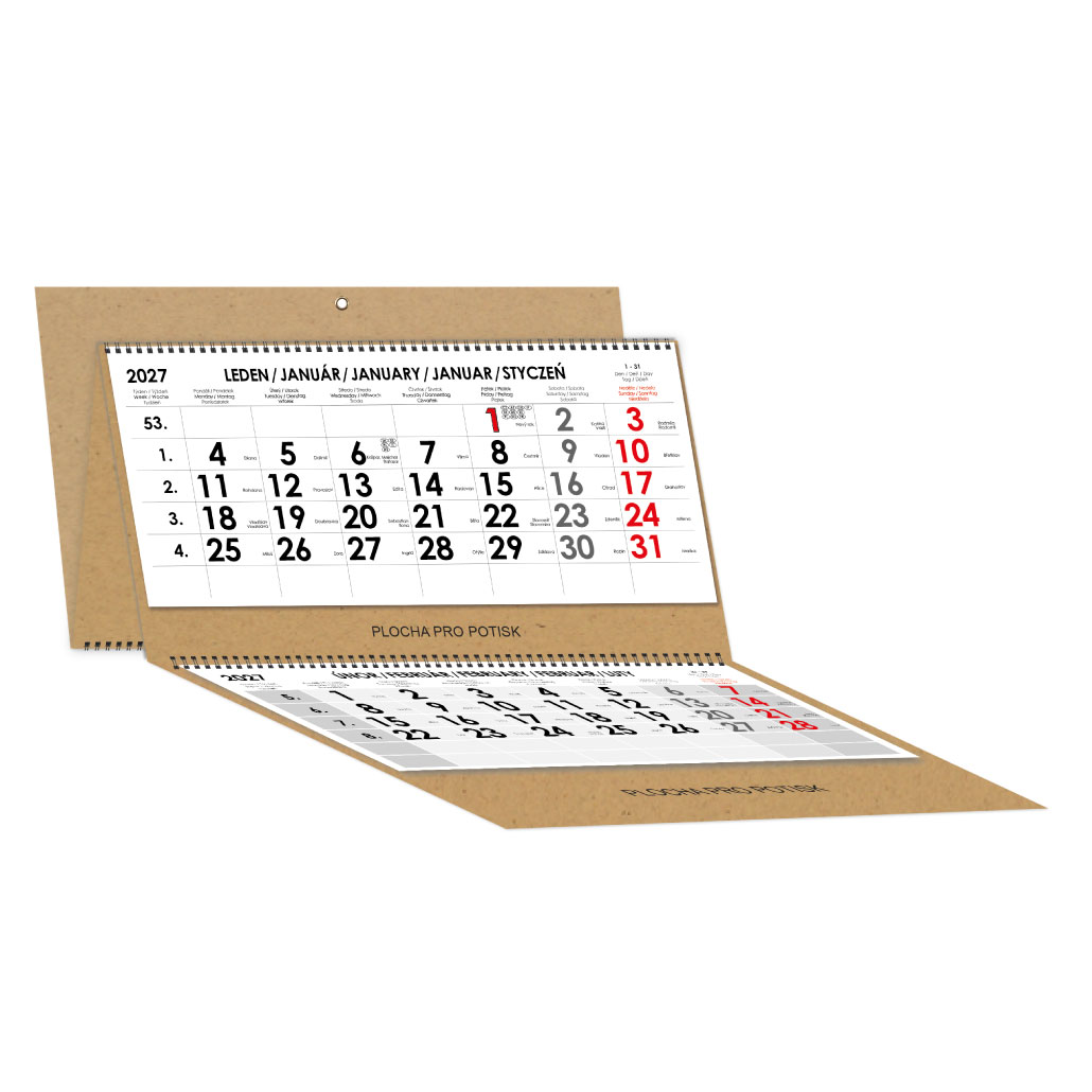 | Typ kalendáře | Nástěnný, Tříměsíční |