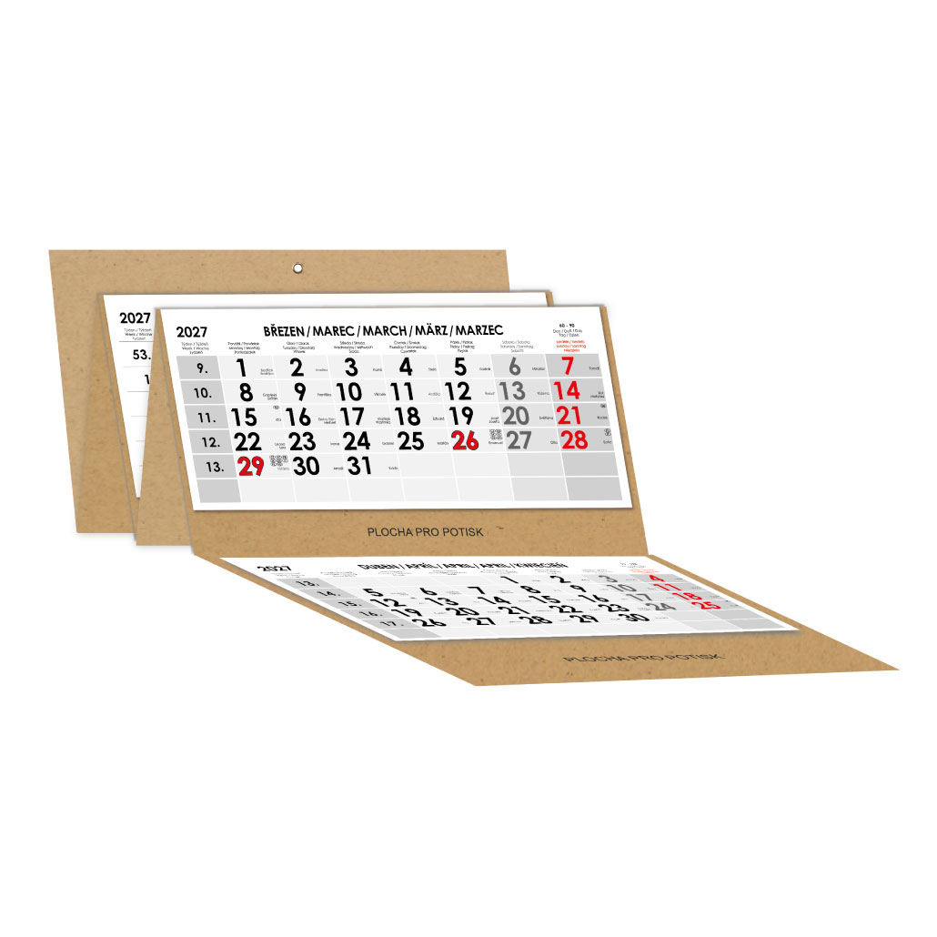 Pětiměsíční kalendář Kvinto Kraft skládaný český 2027 - šedý