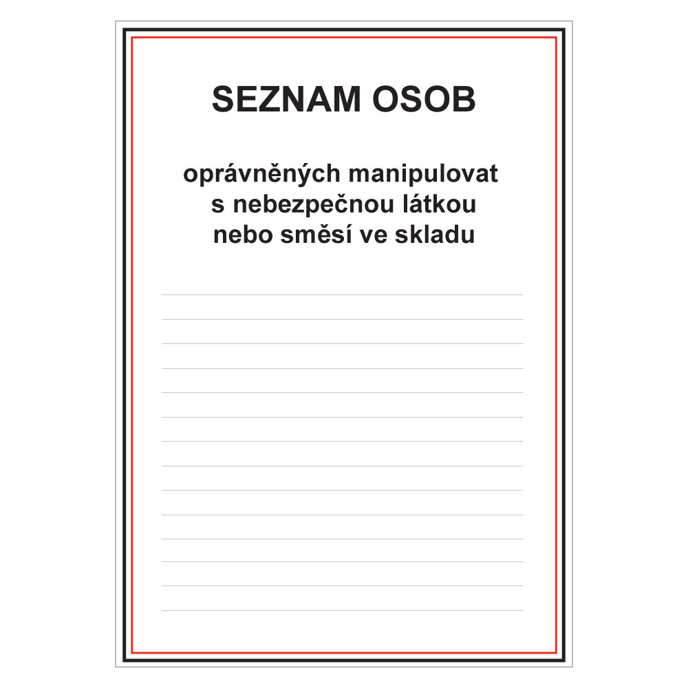 Seznam osob oprávněných manipulovat s nebezpečnou látkou nebo směsí ve skadu, plast 1 mm, a4