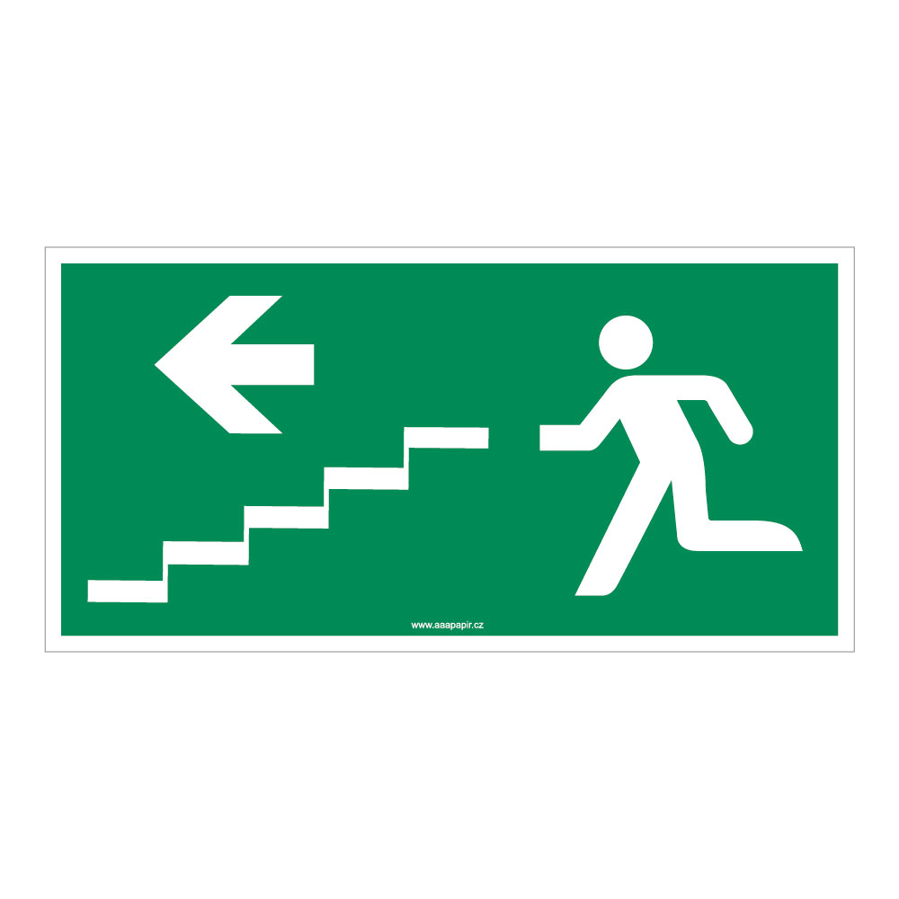 Únikové schodiště vlevo dolů - bezpečnostní tabulka, samolepka 300x150 mm