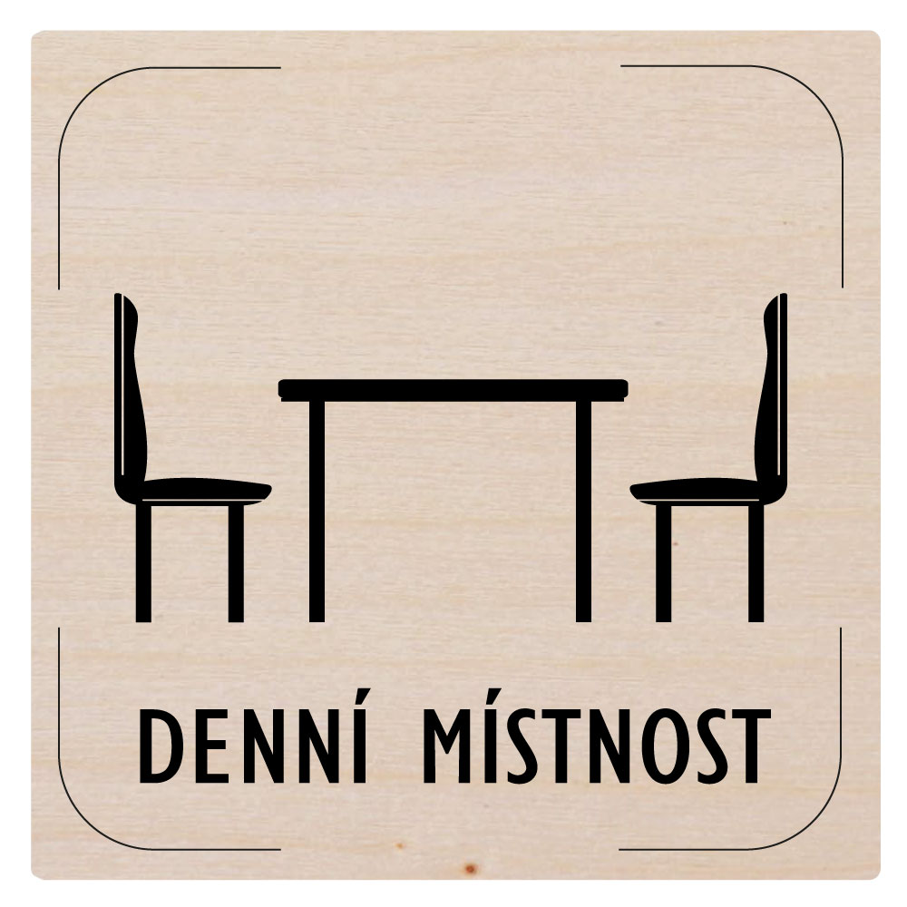 Cedulka na dveře - Denní místnost - piktogram, dřevěná tabulka, 80 x 80 mm