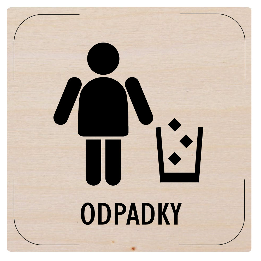 Cedulka na dveře - Odpadky - piktogram, dřevěná tabulka, 80 x 80 mm