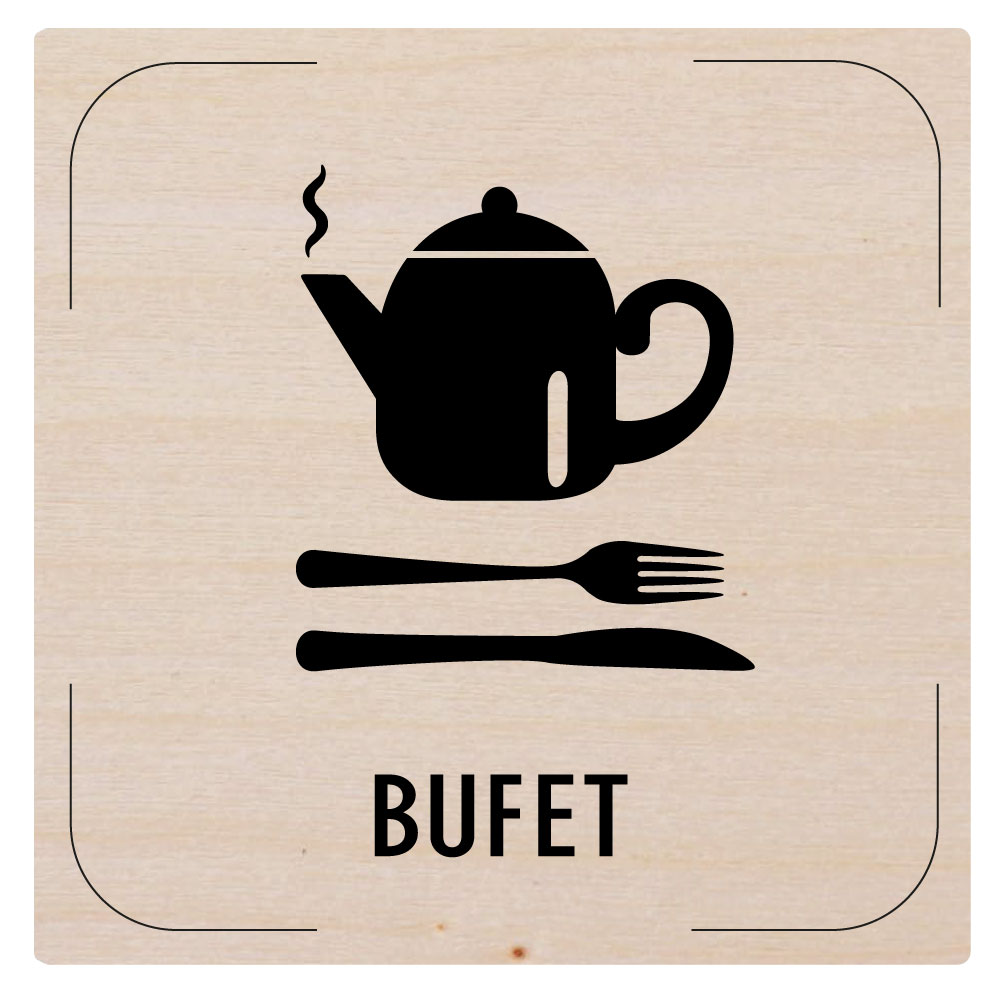 Cedulka na dveře - Bufet - piktogram, dřevěná tabulka, 80 x 80 mm