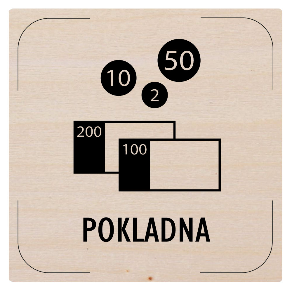 Cedulka na dveře - Pokladna - piktogram, dřevěná tabulka, 80 x 80 mm