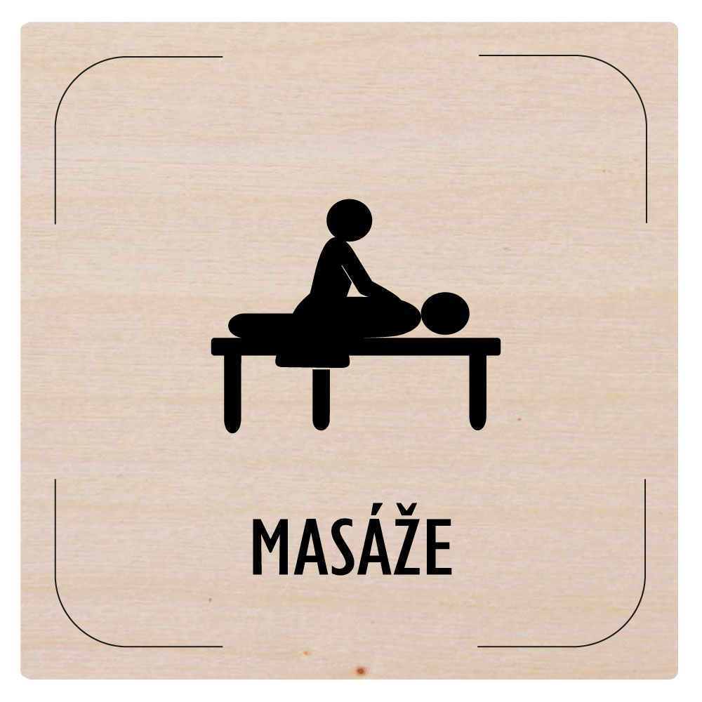 Cedulka na dveře - Masáže - piktogram, dřevěná tabulka, 80 x 80 mm