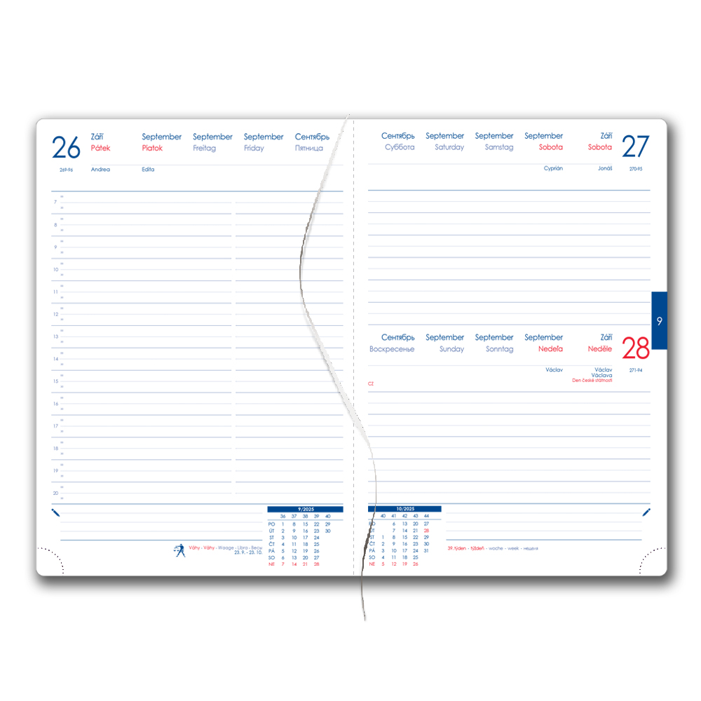 Diář je vhodný pro sleporažbu a barevnou ražbu.