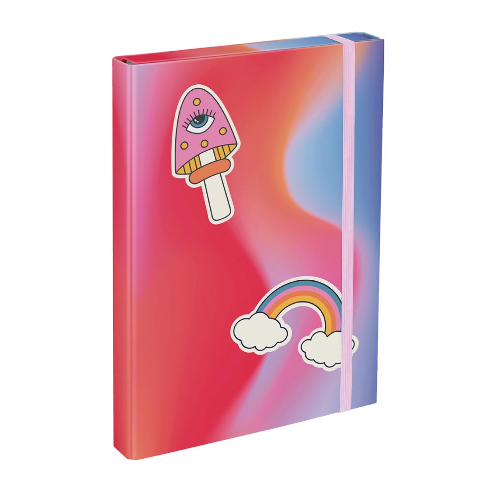 • Ochranné desky na úschovu sešitů či jiných dokumentů, včetně vnitřní klopy proti vypadnutí, zajištěné gumičkou.