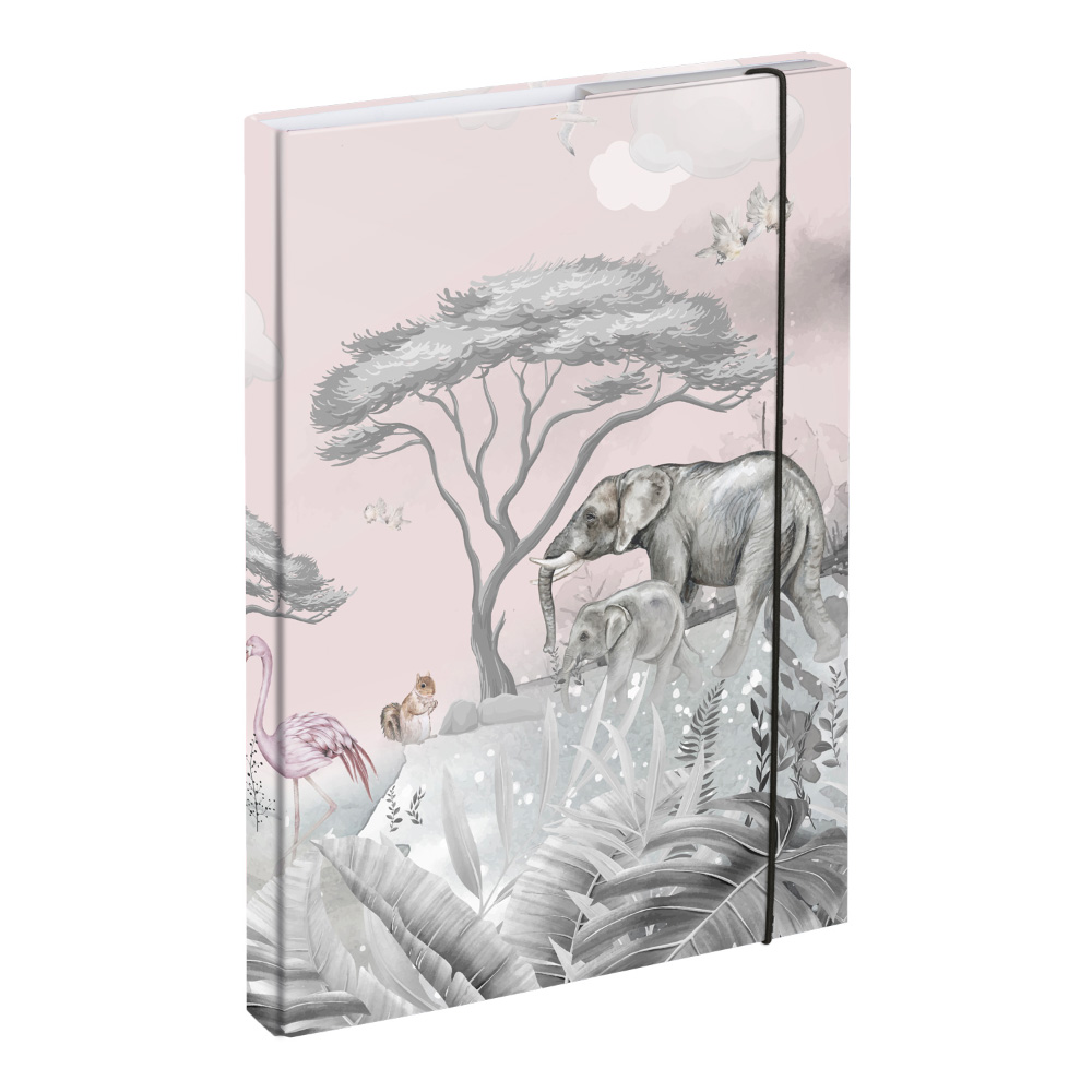 • Ochranné desky na úschovu sešitů či jiných dokumentů, včetně vnitřní klopy proti vypadnutí, zajištěné gumičkou.