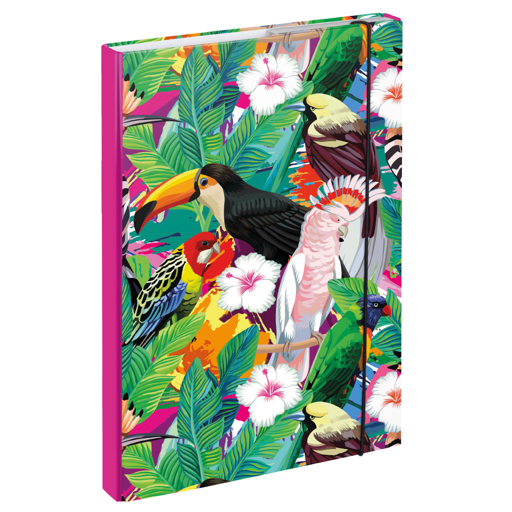 • Ochranné desky na úschovu sešitů či jiných dokumentů, včetně vnitřní klopy proti vypadnutí, zajištěné gumičkou.