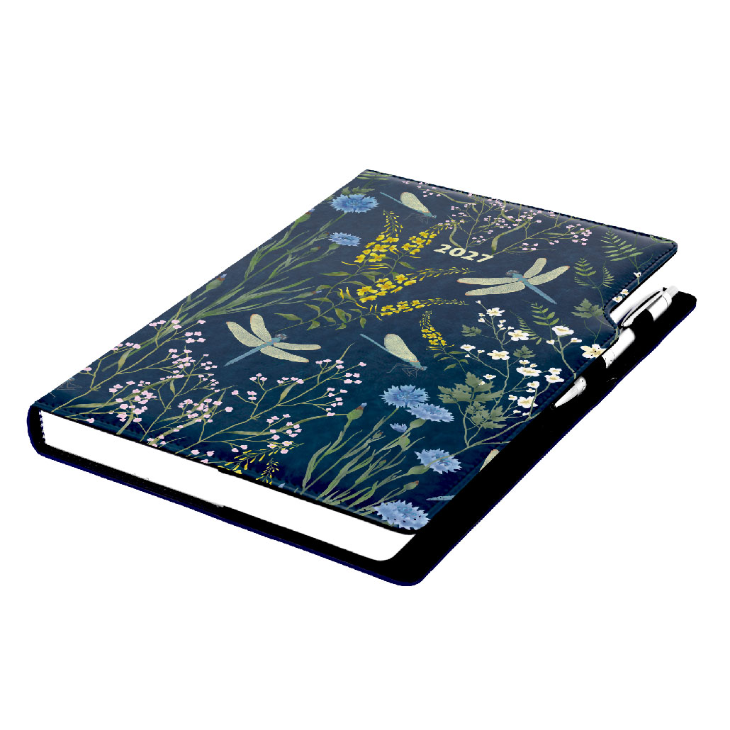 Diář DESIGN denní A4 2027 - modrá - Vážky