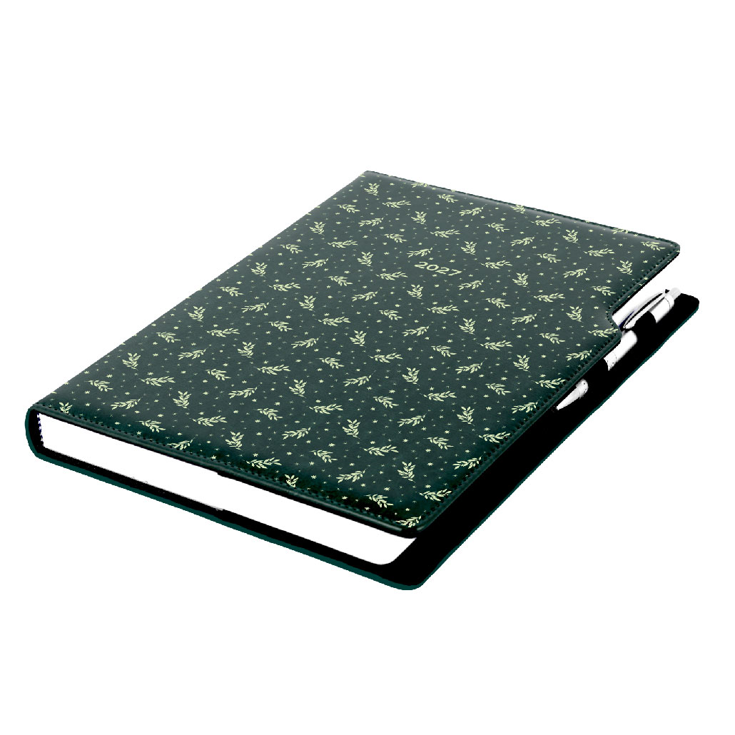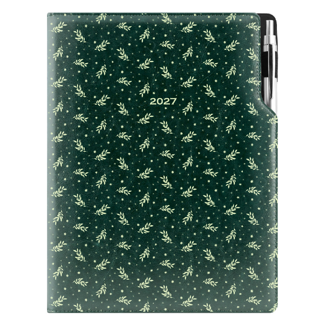 Diář DESIGN denní A4 2027 - zelená - Větvičky