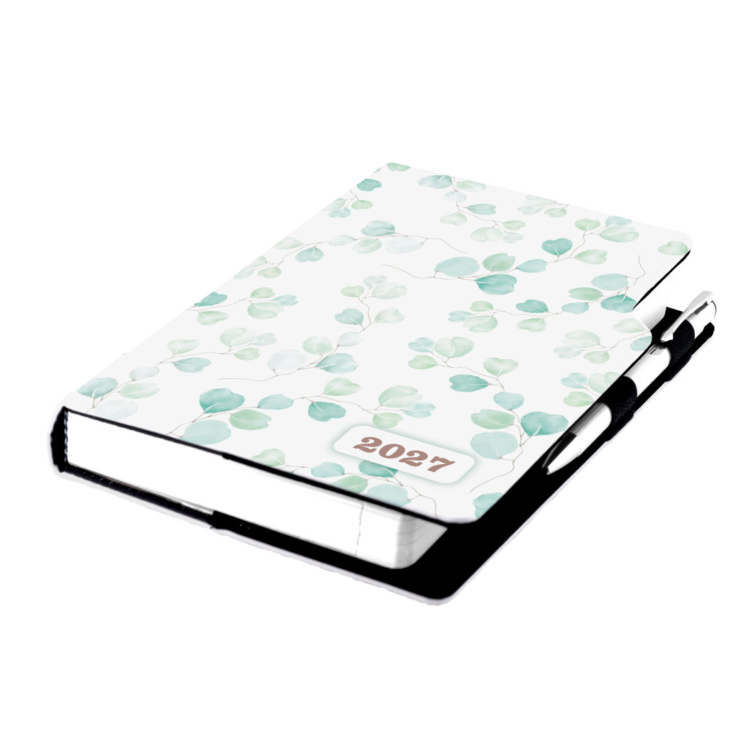 Diář obsahuje: kulaté odtrhávací rožky, bílou záložku a propisku