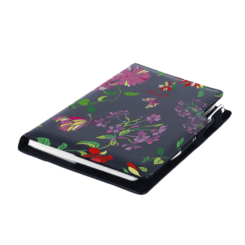 Diář DESIGN denní A5 2027 český - černá - Květy