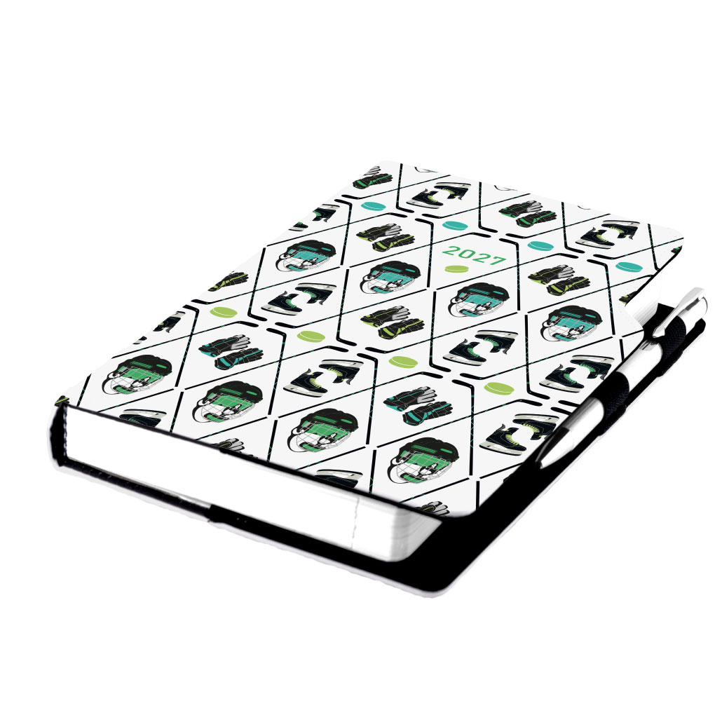 Diář obsahuje: kulaté odtrhávací rožky, bílou záložku a propisku