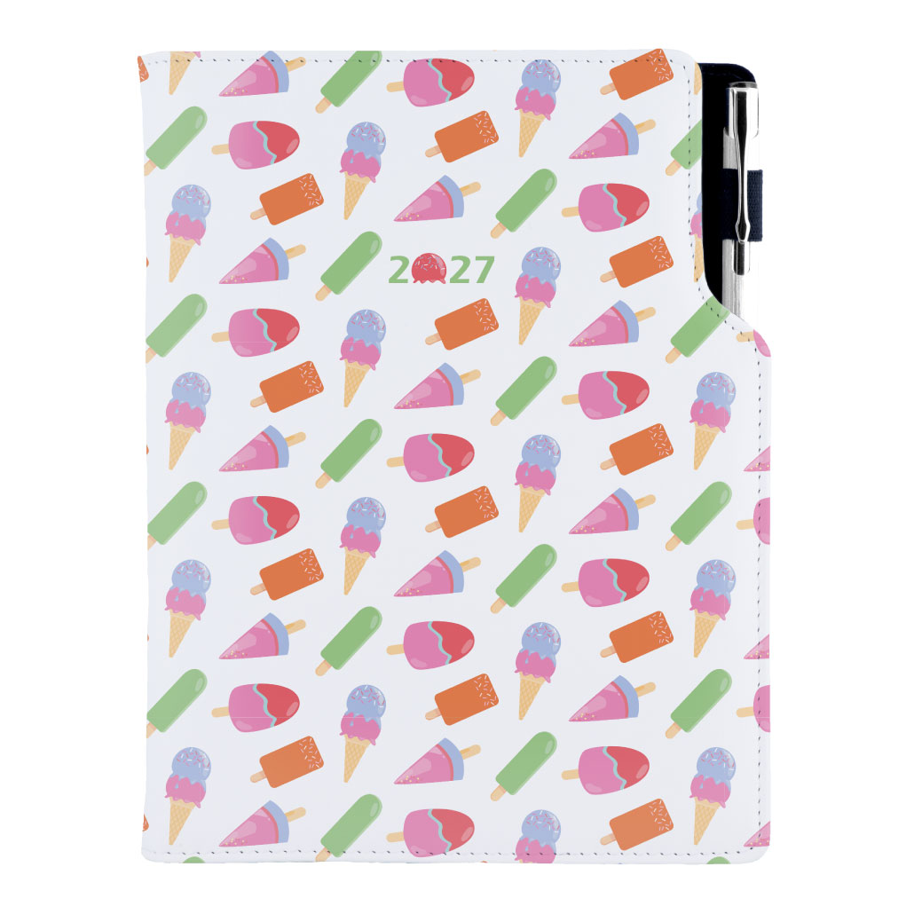 Diář obsahuje: kulaté odtrhávací rožky, bílou záložku a propisku