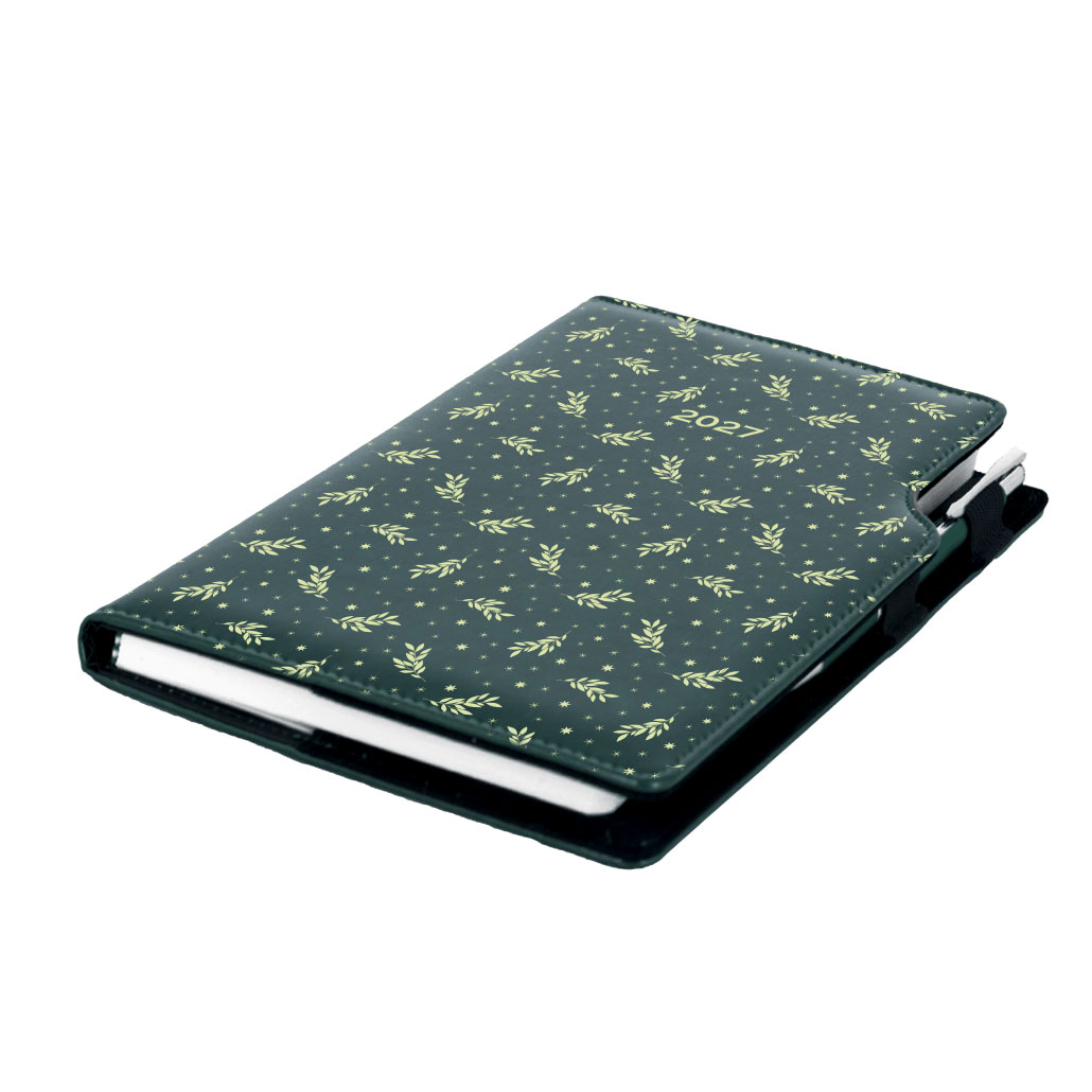 Diář DESIGN denní B6 2027 - zelená - Větvičky