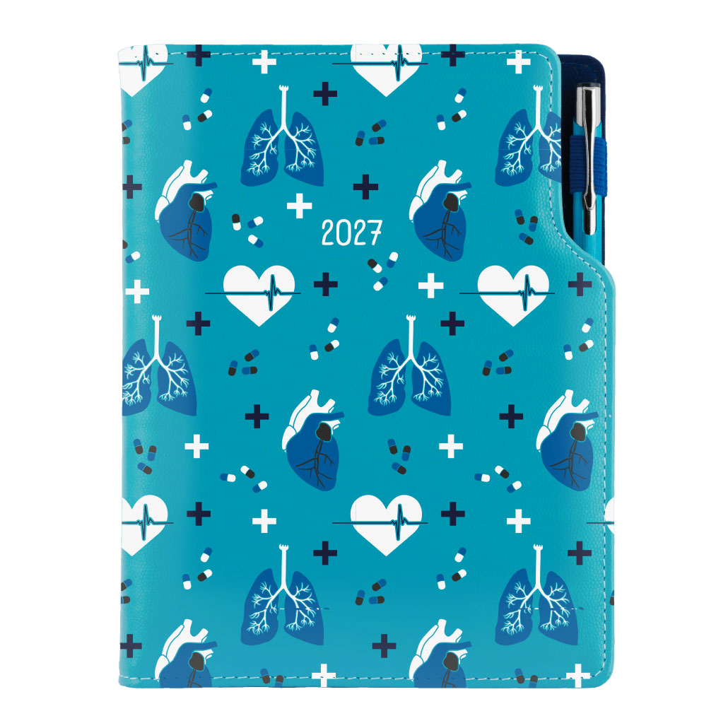 Diář DESIGN týdenní A5 2027 český - tyrkysová - Doktor - srdce