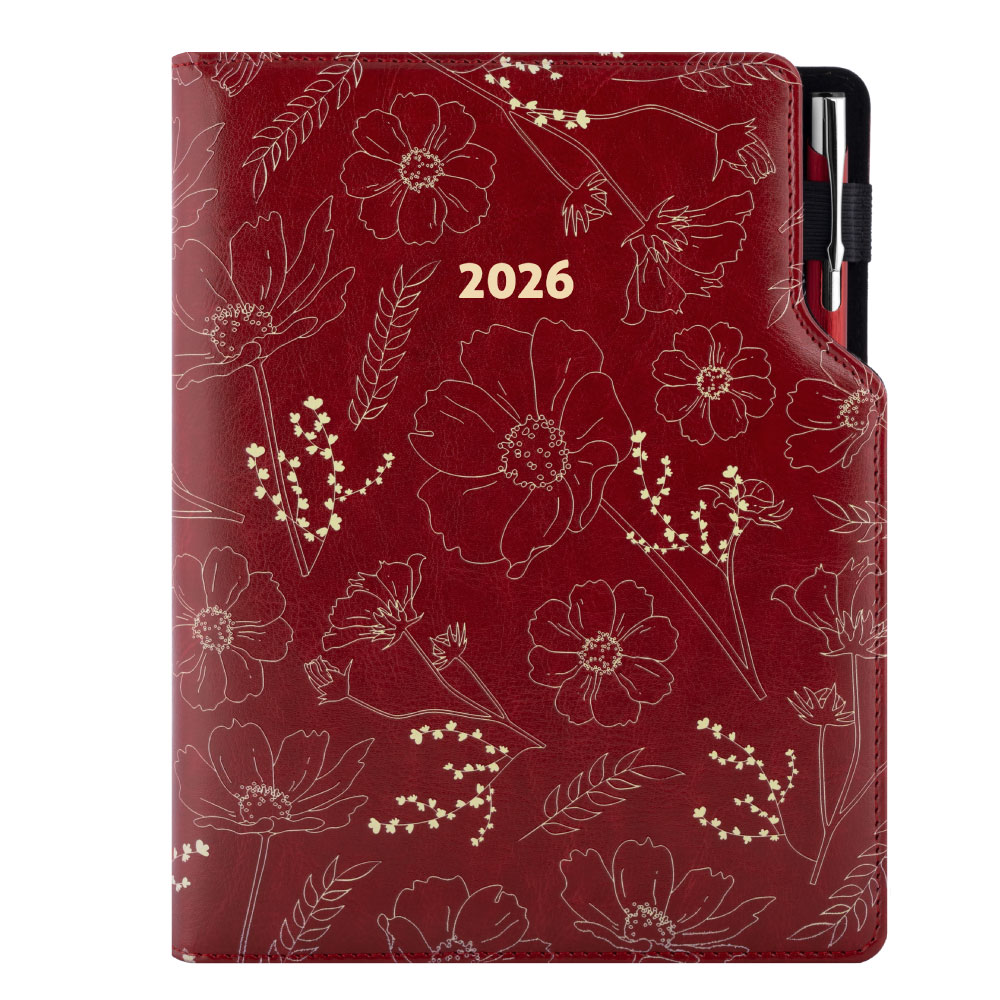 Diář DESIGN týdenní B6 2026 - bordó - Květiny