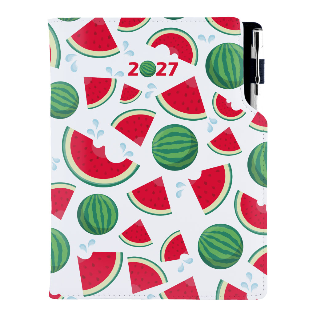 Diář obsahuje: kulaté odtrhávací rožky, bílou záložku a propisku
