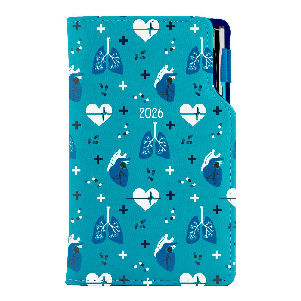 Diář DESIGN týdenní kapesní 2026 český - tyrkysová - Doktor - srdce