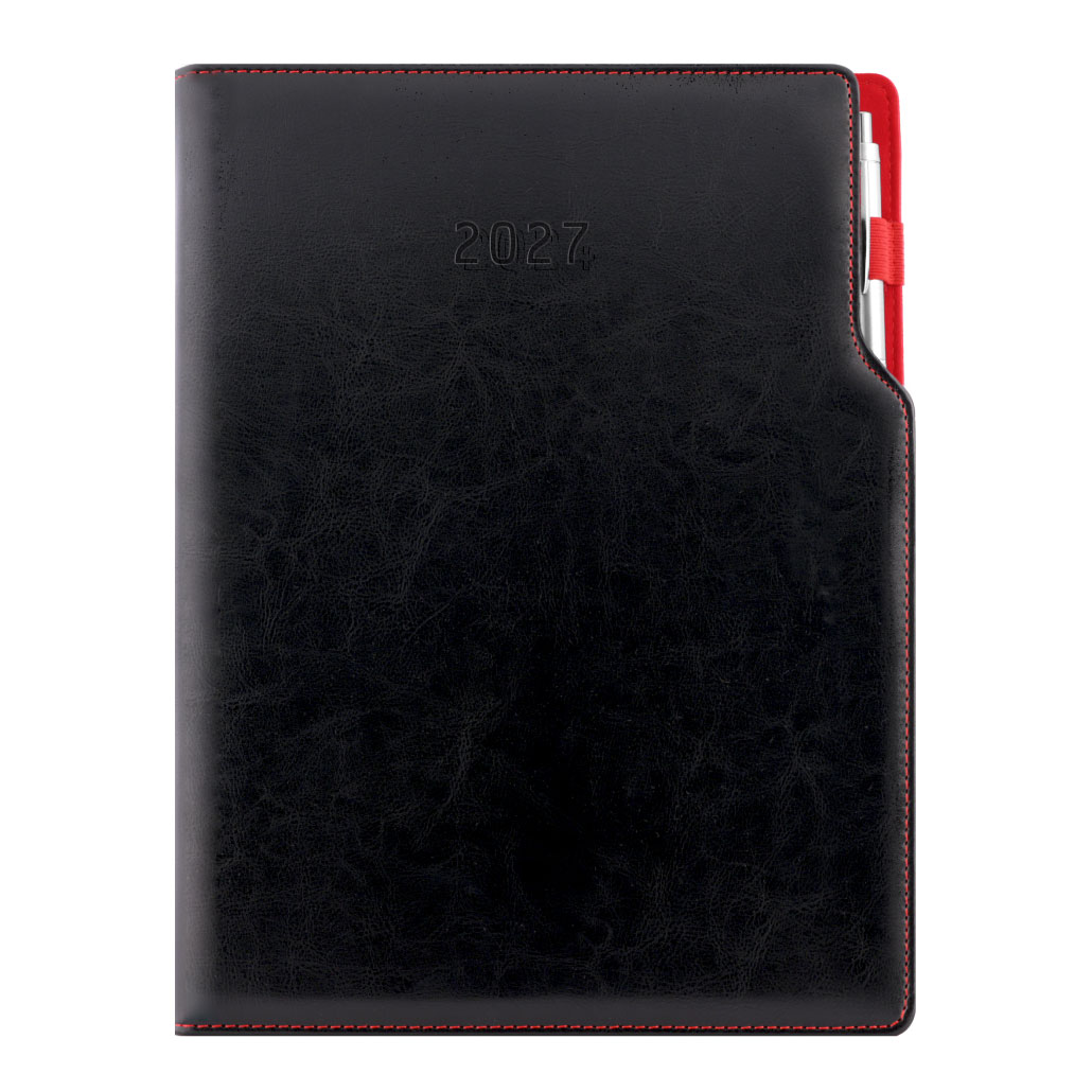 Diář GEP s propiskou denní A4 2027 - černá/červený vnitřek