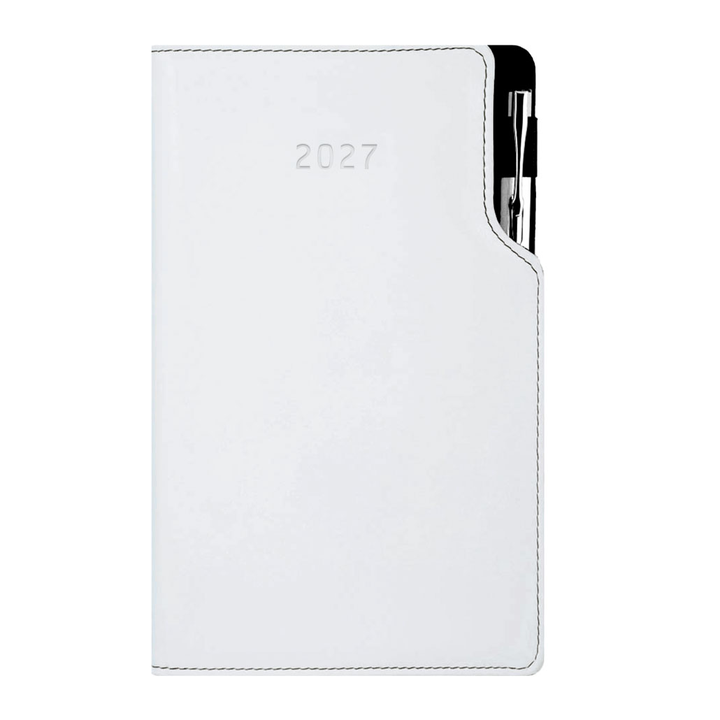 Diář GEP s propiskou týdenní kapesní 2027 český - bílá/černé obšití