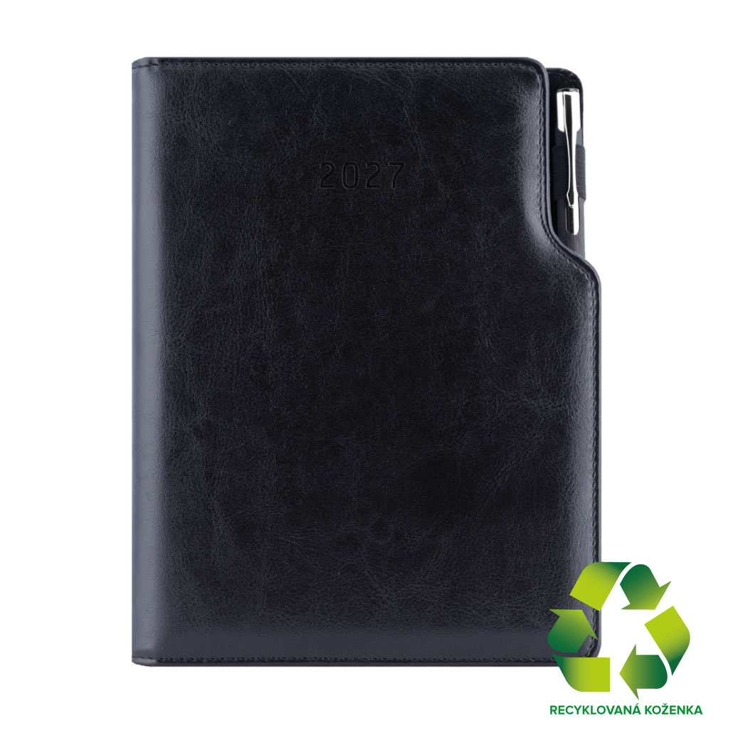 Diář GEP s propiskou týdenní speciál A5 2027 - černá/černý vnitřek - recyklovaná koženka