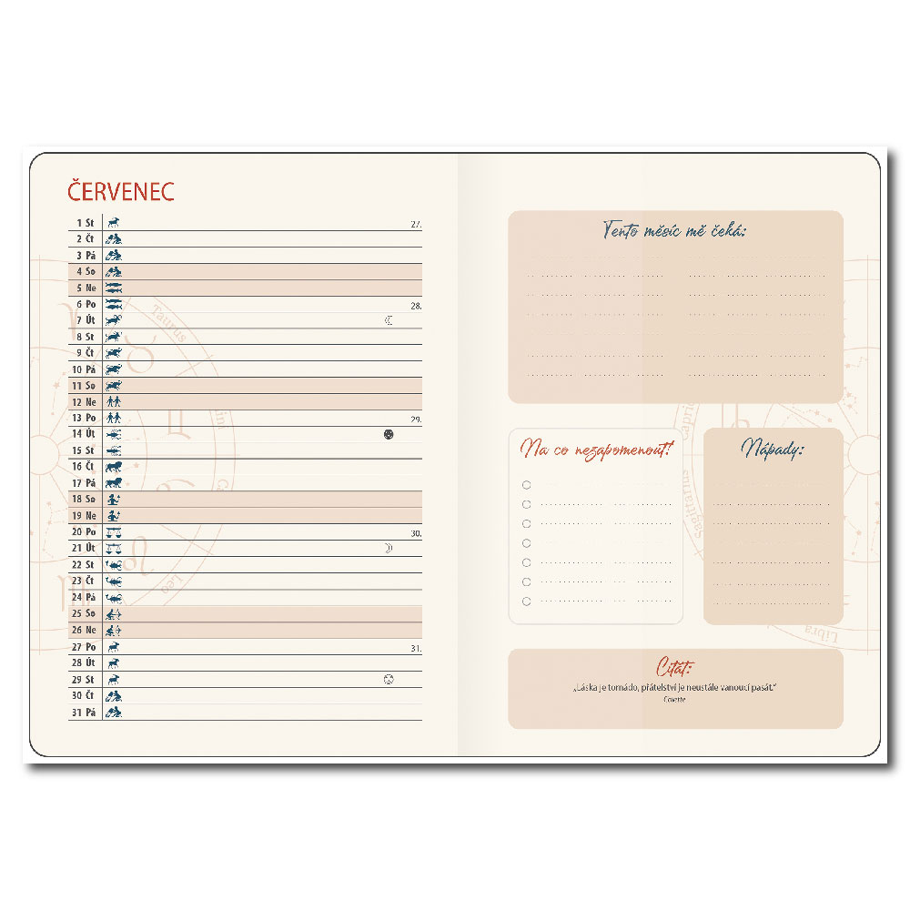 Diář týdenní B6 2026 Lunární diář Dream s gumičkou