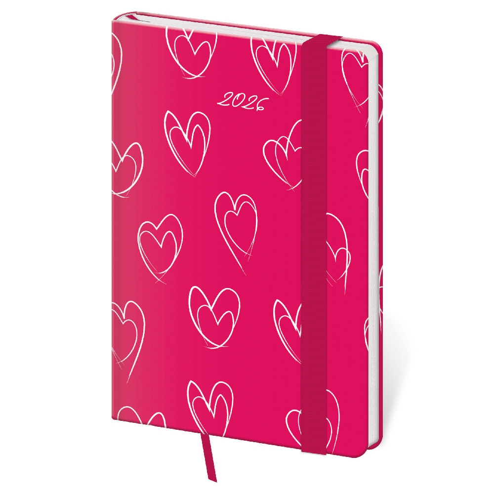 Diář týdenní kapesní 2026 Vario - Hearts s gumičkou