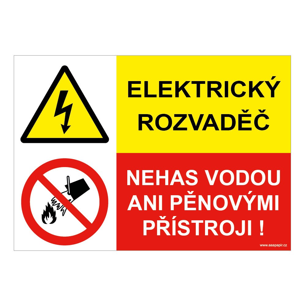 RBT-S1-1005 | ELEKTRICKÝ ROZVADĚČ - NEHAS VODOU ANI PĚNOVÝMI PŘÍSTROJI, KOMBINACE, Samolepka 297x210mm | Samolepka | A4 (210x297 mm) | AAApapir |