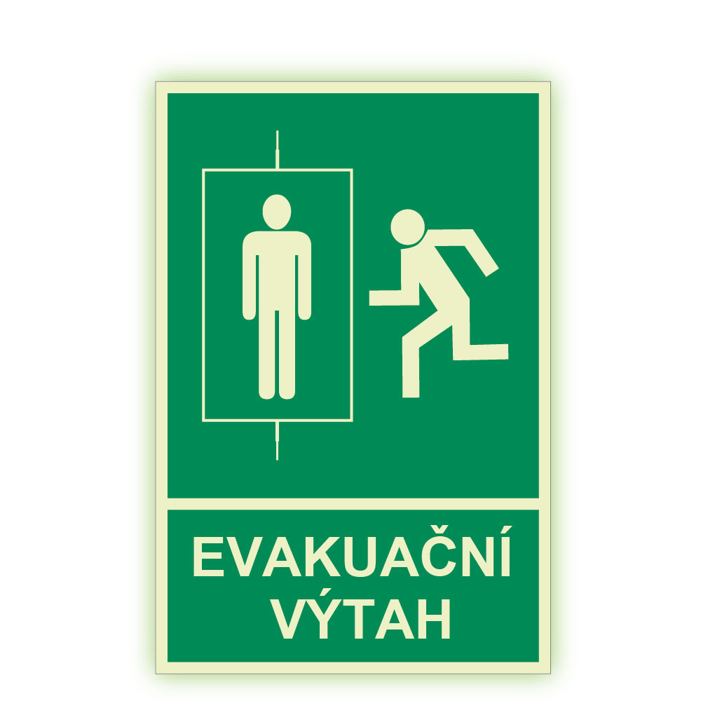 Evakuační výtah - fotoluminiscenční tabulka, plast 2 mm 150x200 mm