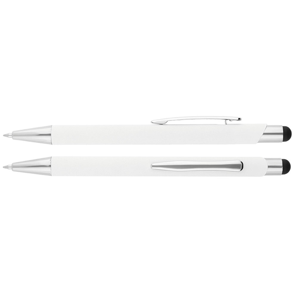 Hliníkové kuličkové pero Bernardo s chromovanými částmi a stylusem pro ovládání dotykových zařízení - bílá