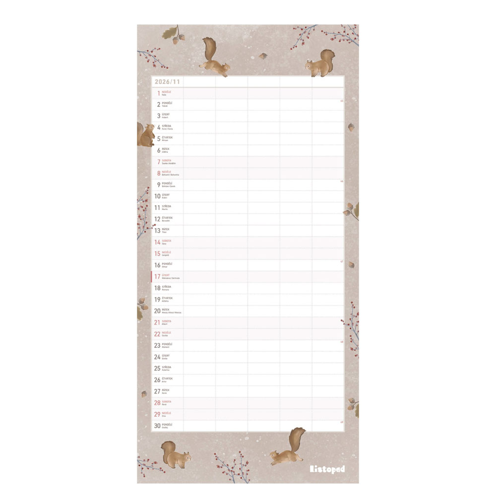 Nástěnný kalendář 2026 - Rodinný plánovač Les
