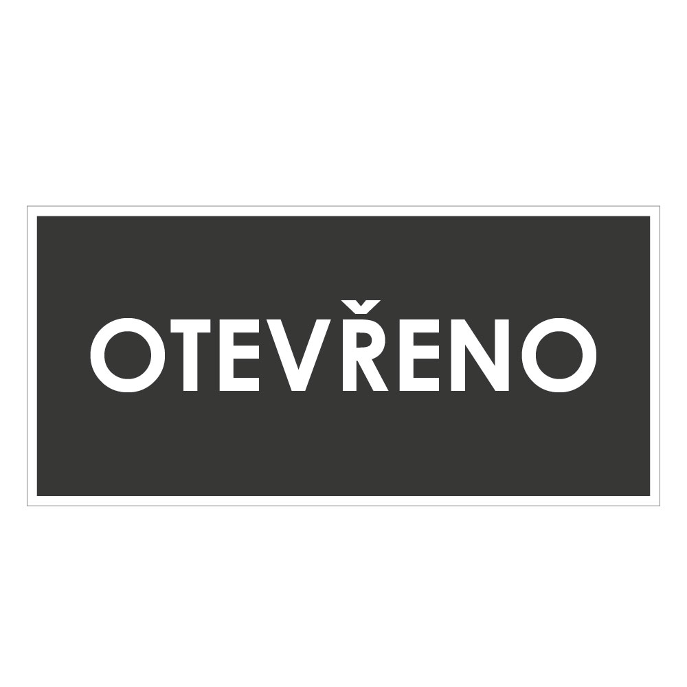 OTEVŘENO, šedá, samolepka, 190x90 mm