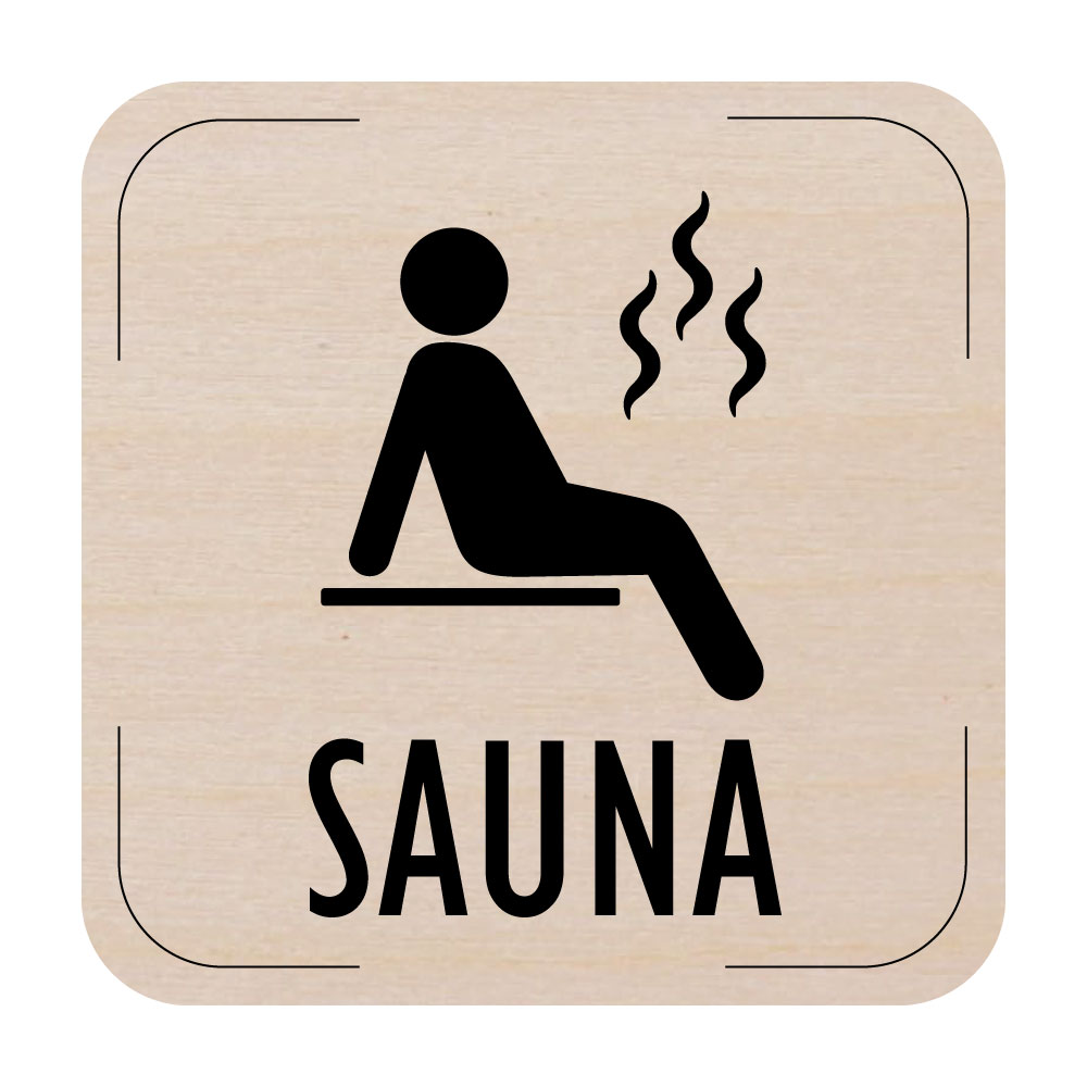 Popis místnosti - cedulka na dveře - Sauna, dřevěná tabulka, 80 x 80 mm