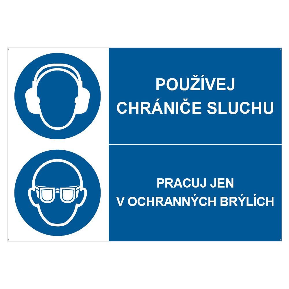 POUŽÍVEJ CHRÁNIČE SLUCHU - PRACUJ JEN V OCHRANNÝCH BRÝLÍCH, KOMBINACE, plast 1 mm, A4 RBT-P21-1030 POUŽÍVEJ CHRÁNIČE SLUCHU - PRACUJ JEN V OCHRANNÝCH BRÝLÍCH, KOMBINACE, plast 1 mm, A4 Plastová tabulka 1 mm A4 (210x297 mm) AAApapir
