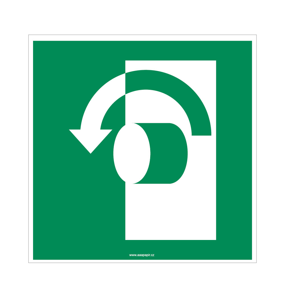 Pro otevření otočit proti směru hodinových ručiček - bezpečnostní tabulka, samolepka 300x300 mm